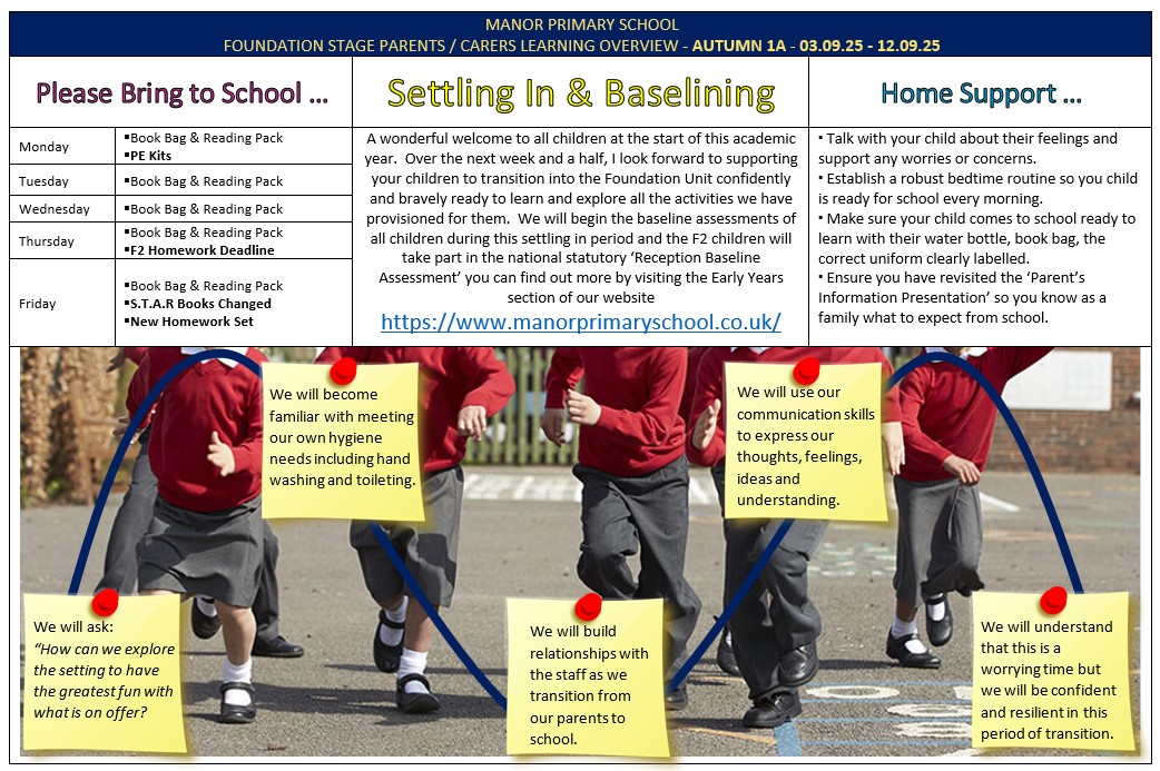 At Manor Primary School, we are committed to ensuring that all children make good or better progress from their individual starting points. Our priority is that children are happy, confident, and successful in their early learning journey. We actively support the development of the Characteristics of Effective Learning, helping each child become a motivated, curious, and resilient lifelong learner.