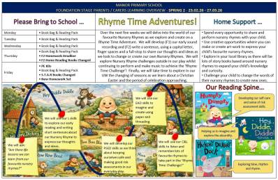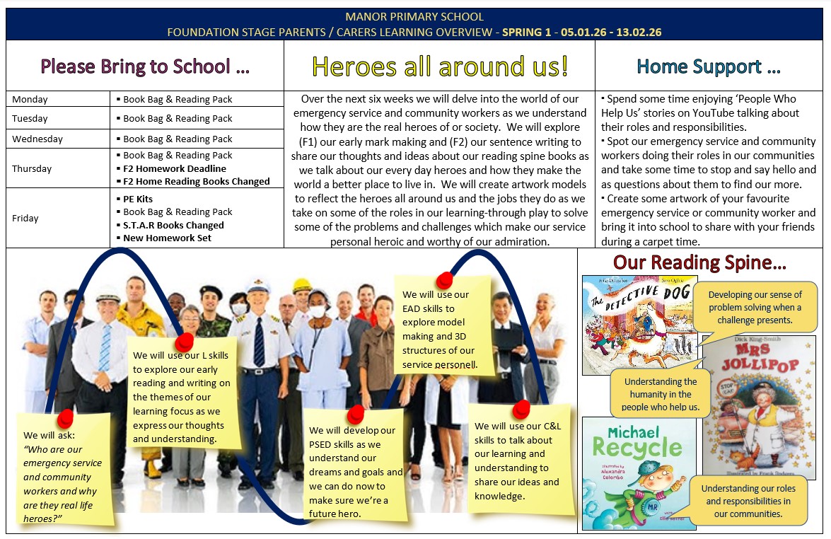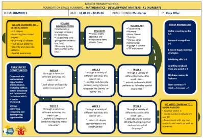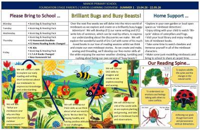 At Manor Primary School we provide the highest standards of teaching and learning by engaging, inspiring, challenging and supporting children to do their best and develop a love of learning. To do this we create a respectful and inclusive atmosphere that is welcoming, fun, friendly and safe through child-led and techer-initiated continuous provision 'learning though play'. The continuous provision universal offer follows a two year cycle and is inspired though a carefully curated book spine, enriched and expanded by the pupils interests.