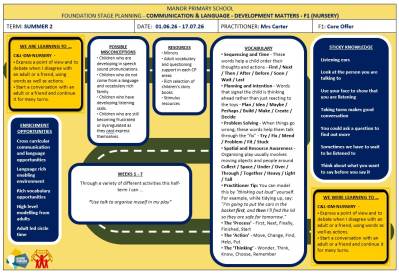 MANOR PRIMARY SCHOOL EYFS IMPLEMENTATION