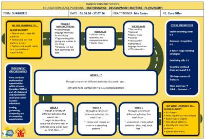 The Foundation 1 core offer promotes knowledge, learning and skill development through child initiated and adult led purposeful play and short carpet focus sessions based on Development Matters.