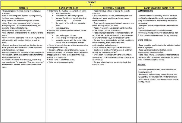 It is crucial for children to develop a life-long love of reading. Reading consists of two dimensions: language comprehension and word reading. Language comprehension (necessary for both reading and writing) starts from birth. It only develops when adults talk with children about the world around them and the books (stories and non-fiction) they read with them, and enjoy rhymes, poems and songs together. Skilled word reading, taught later, involves both the speedy working out of the pronunciation of unfamiliar printed words (decoding) and the speedy recognition of familiar printed words. Writing involves transcription (spelling and handwriting) and composition (articulating ideas and structuring them in speech, before writing).